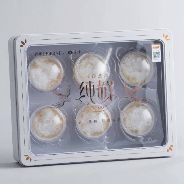 纯鲜燕窝精选自马来西亚黄金燕窝带自然盏,-18℃冷链保鲜,纯净即炖。口感Q弹爽滑,鲜味十足,一上市便广受好评。